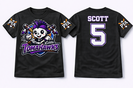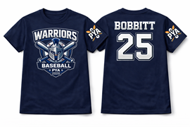 Support Pacific Youth Association with this comfortable T-shirt featuring your team's logo, made from a soft cotton blend and available in both youth and adult sizes, it’s perfect for game days, practices, and community events. By purchasing a shirt, you’re directly supporting our scholarship program, which helps ensure that all kids, especially those who are under-privileged have the opportunity to play ball.